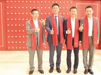 中智關(guān)愛(ài)通(上海)科技股份有限公司在新三板成功掛牌,圖為公司總經(jīng)理潘軍(右二)與管理團(tuán)隊(duì)