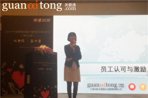 2016年5月19日,第四屆2016中國薪酬福利管理創新論壇在上海完美收官,上海中智關愛通企業管理有限公司員工認可與激勵中心高級總監廖珺婕女士作為特邀嘉賓,出席了會議并作了演講,演講的主題是“真誠關懷,做員工的堅強后盾”。廖女士還向與會嘉賓分享了關愛通突破性薪酬福利體系和創新的 員工激勵機制,倡導公司福利體系和員工激勵方式要與時俱進、集思廣益,為廣大HR帶來更實操、更具有創新性的“薪力量”。