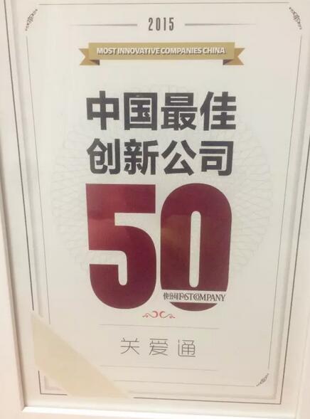 2016年1月20日,美國著名商業雜志FastCompany中文版《快公司》發布“2015年中國最佳創新公司50”榜單,中智關愛通成唯一入選的人力資源外包服務機構,其他上榜的企業還有阿里巴巴、騰訊、Uber、海底撈等企業,涵蓋了電商、互聯網金融、大數據應用、游戲、文化、教育、健康、公益等多個領域。
